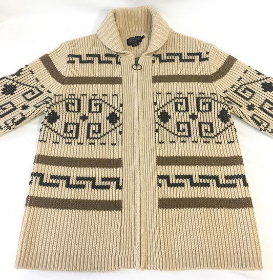 Vintage Pendleton "The Big Lebowski" Beige Abstract Aztec Print Wool Zip Cardigan Sweater, Men's Sz. M, Vintage Western Sweater