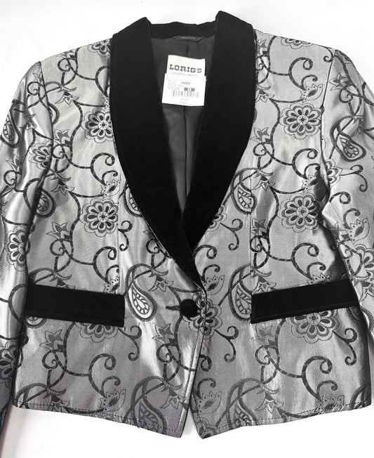 Vintage 90s Lorig's Black Silver Metallic Velvet Paisley Floral Print Blazer, Women's Sz. S