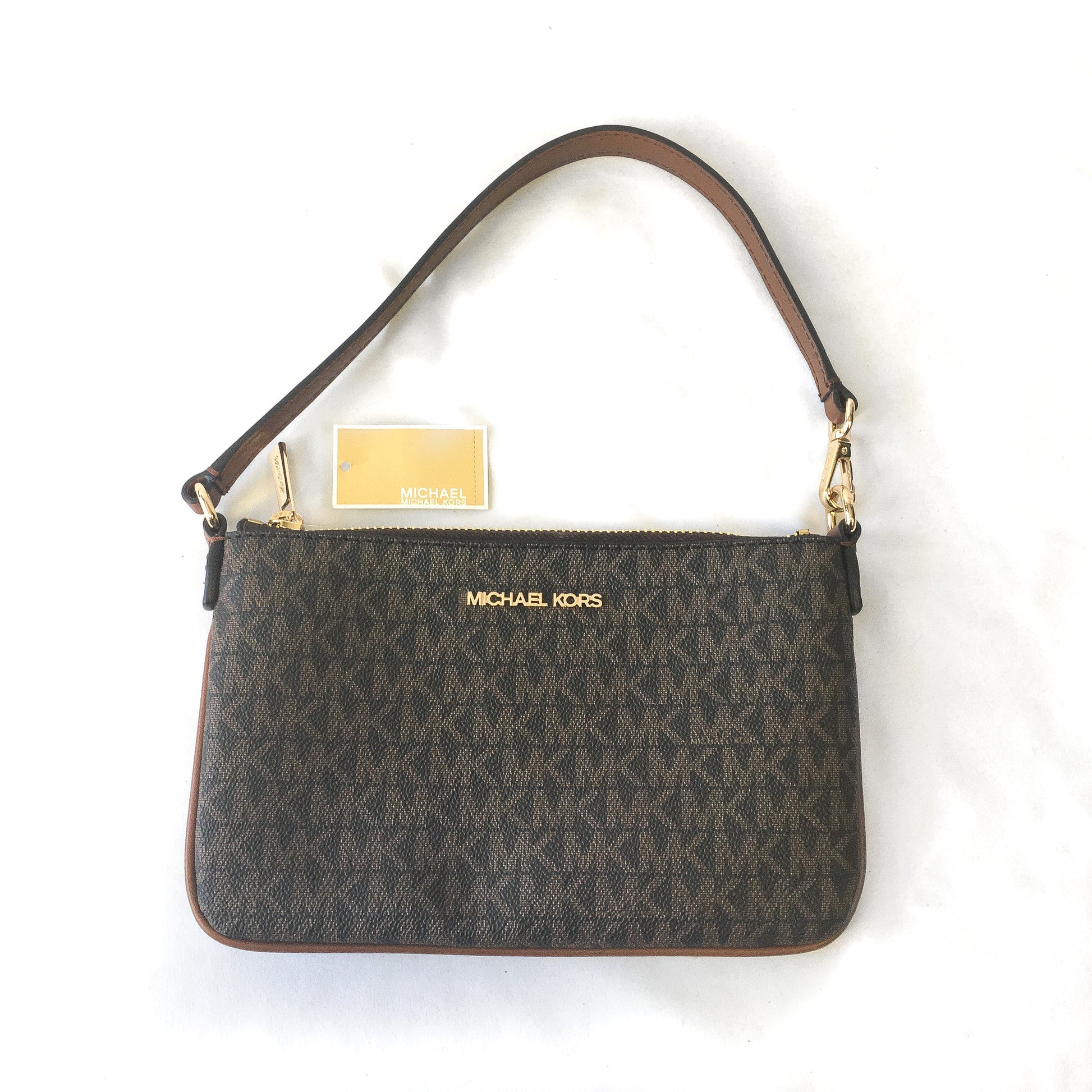 NWT Michael Kors Jet Set Brown Travel Pouch Wristlet Mini Bag
