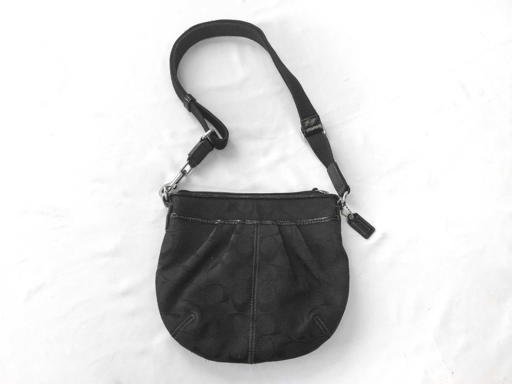 Y2K 00s Coach Black Signature C Monogram Pleated Crossbody Bag