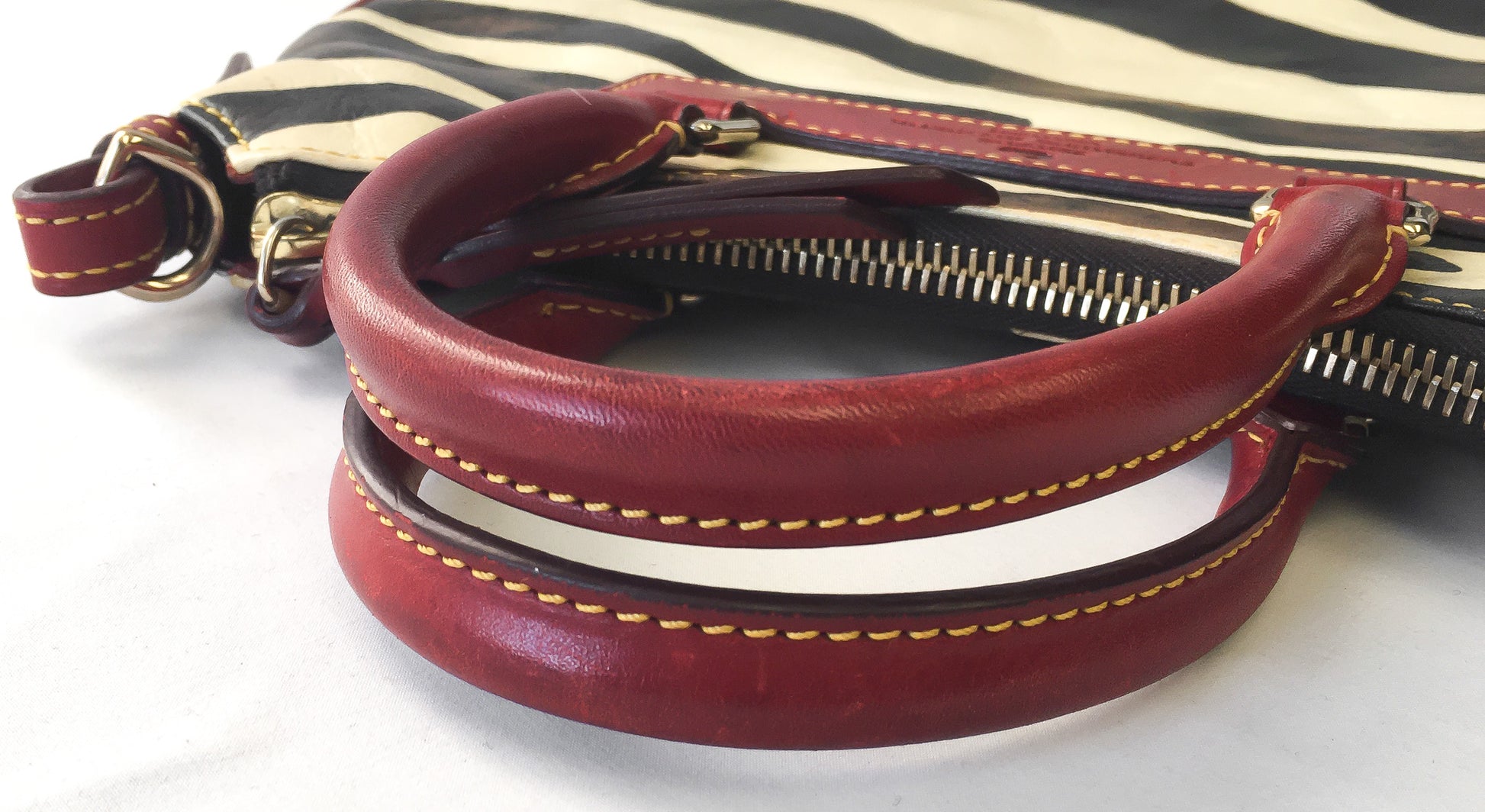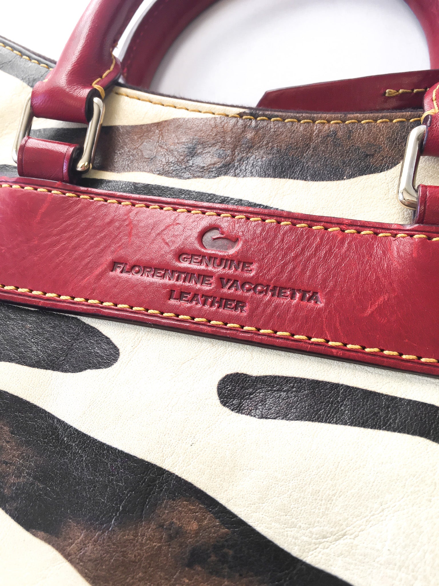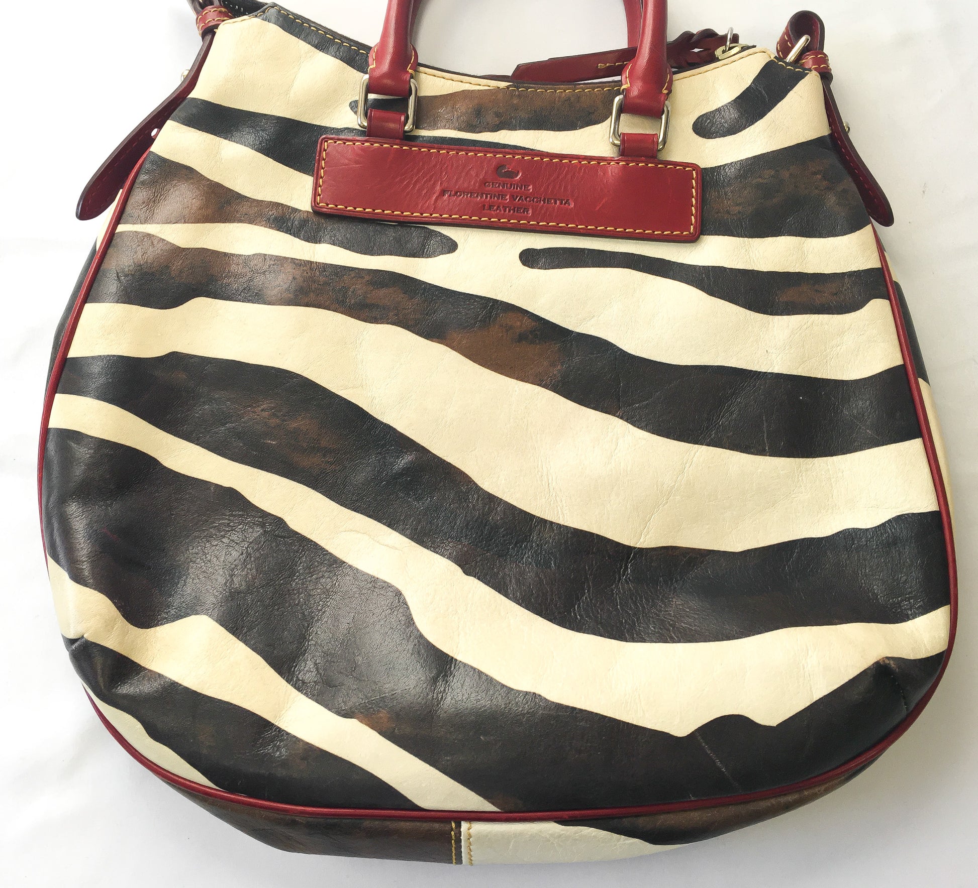Y2K 00s Dooney and Bourke Cream/Black Burnished Safari Zebra Print Satchel Handbag